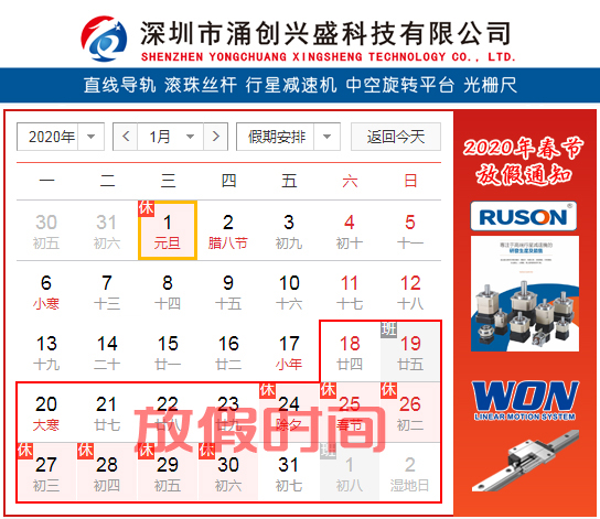 在2020年春節(jié)即將到來之際,涌創(chuàng)公司非常感謝您們一直以來的支持和關(guān)注,非常感謝您們對(duì)我公司代理產(chǎn)品WON直線導(dǎo)軌及