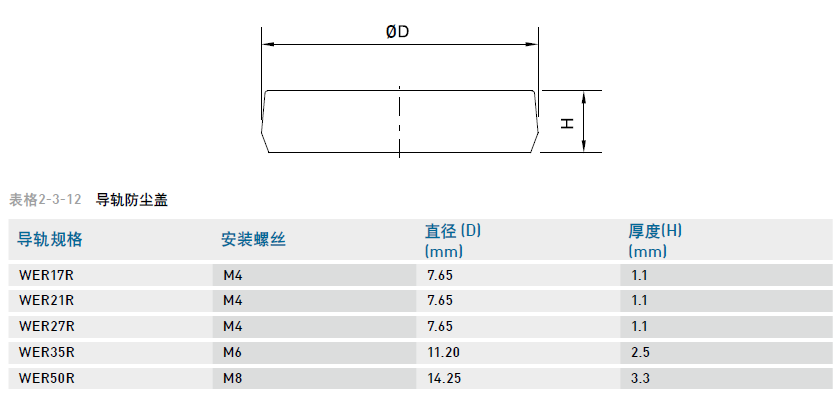 導軌螺栓蓋,為防止切削粉末或異物經由螺栓孔侵入滑塊內部影響精度,客戶必須在安裝導軌時將螺栓蓋打入螺栓孔內,每支導軌出廠時皆配有螺栓蓋。