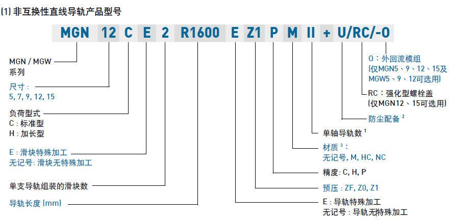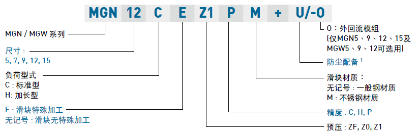 2. MGN及MGW規格9,12,15可選用防塵片。